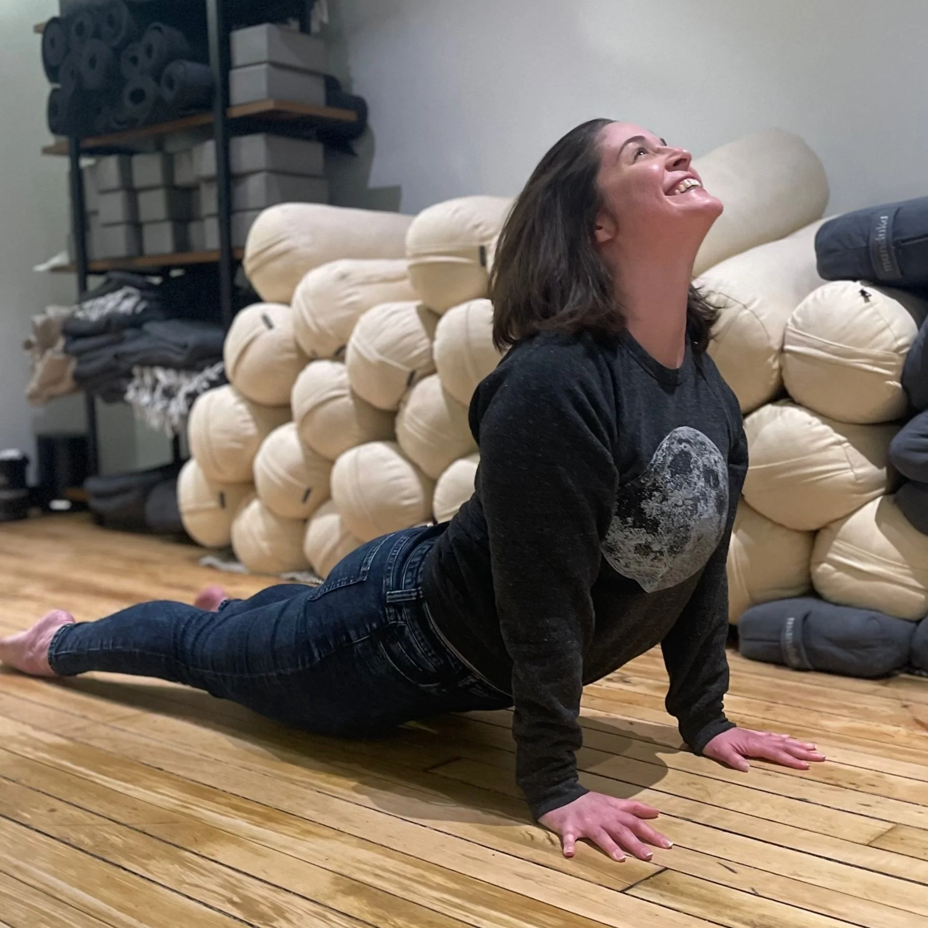 This practice has been passed down from teacher to student for thousands of years. I feel honored and humbled each time I have the opportunity to share what’s been shared with me. Synthesized through my commitment to this practice and yoga’s perspective, I am on the journey with you -we are all connected. My style of asana (physical) practice is Hatha-Vinyasa, a mindful flow. It’s accessible and adaptable so you can practice at any age and ability. An infusion of my dance background and study also influences my class by offering creative sequencing, music that flows with the movement, and improvisational invitations within the flow.